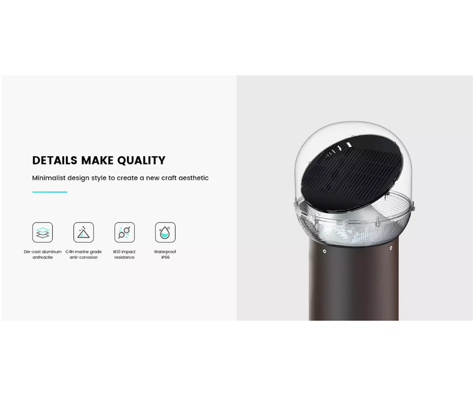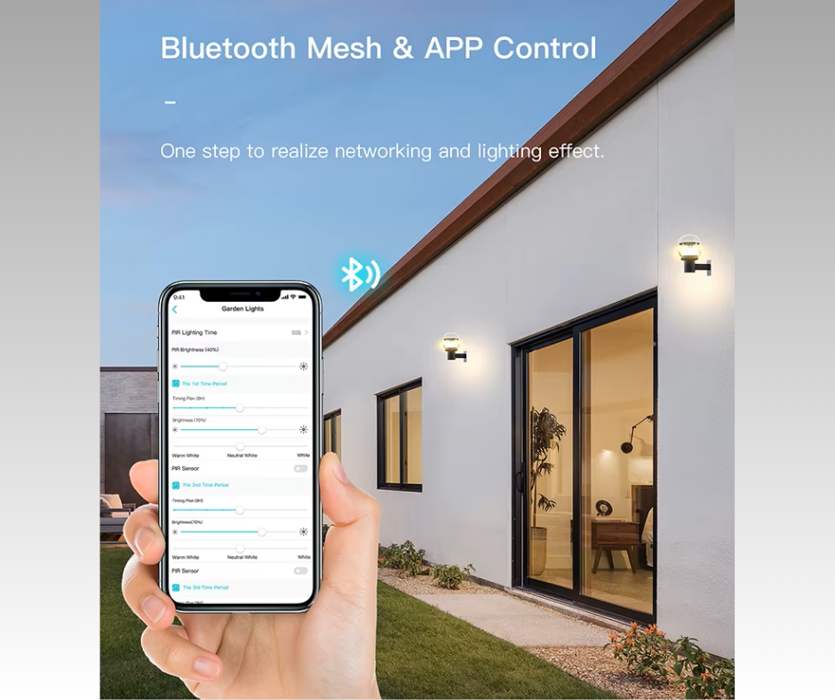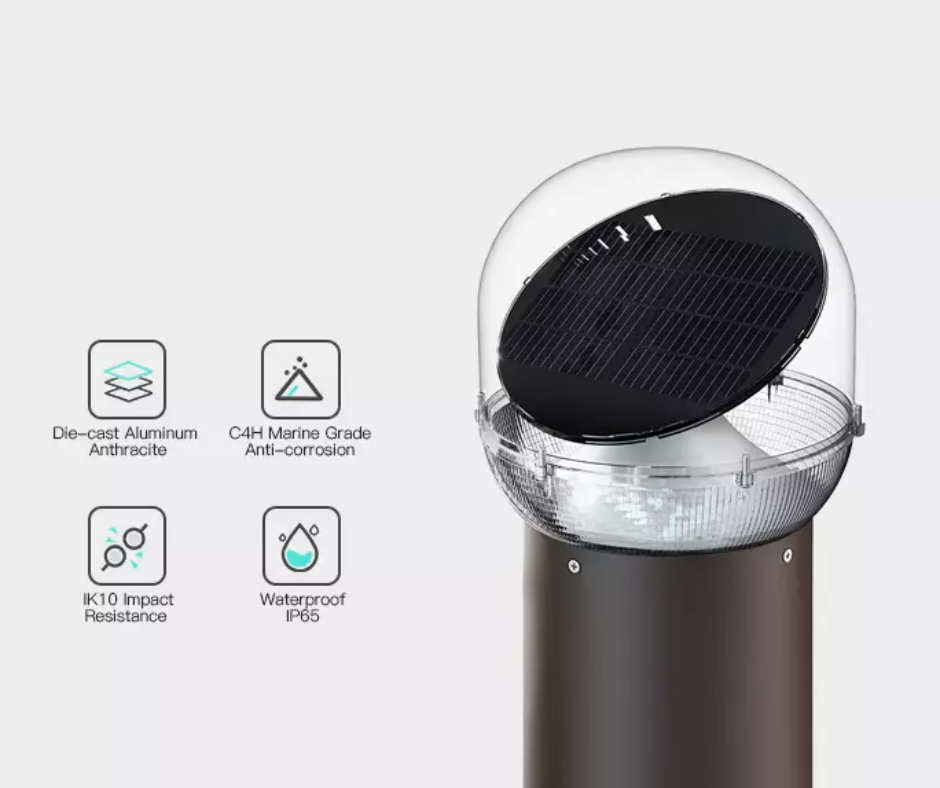 Ce luminaire mural intelligent à LED est doté d'un panneau solaire inclinable, d'un éclairage à intensité variable et d'un indice d'étanchéité IP66, ce qui en fait la solution d'éclairage extérieur idéale pour les jardins, les villas, les parcs, les allées et les espaces publics.