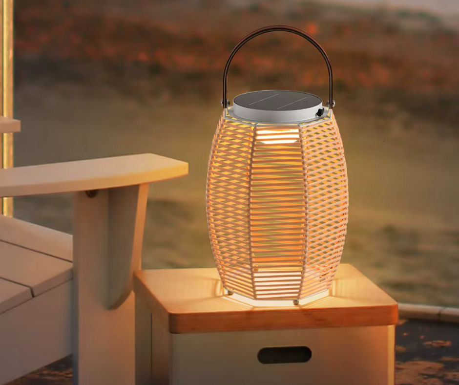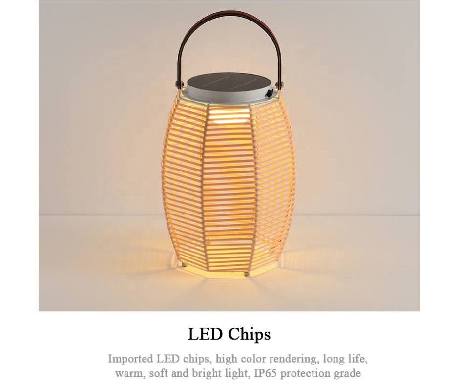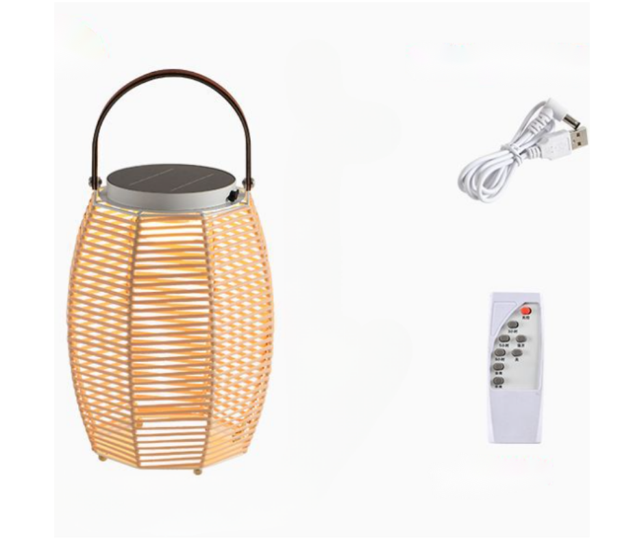 Enhance patios, gardens, and summer living rooms with this rattan and wrought iron solar table lamp by LIPTENA SOLAR ENERGY.