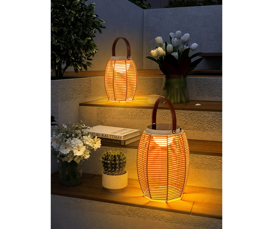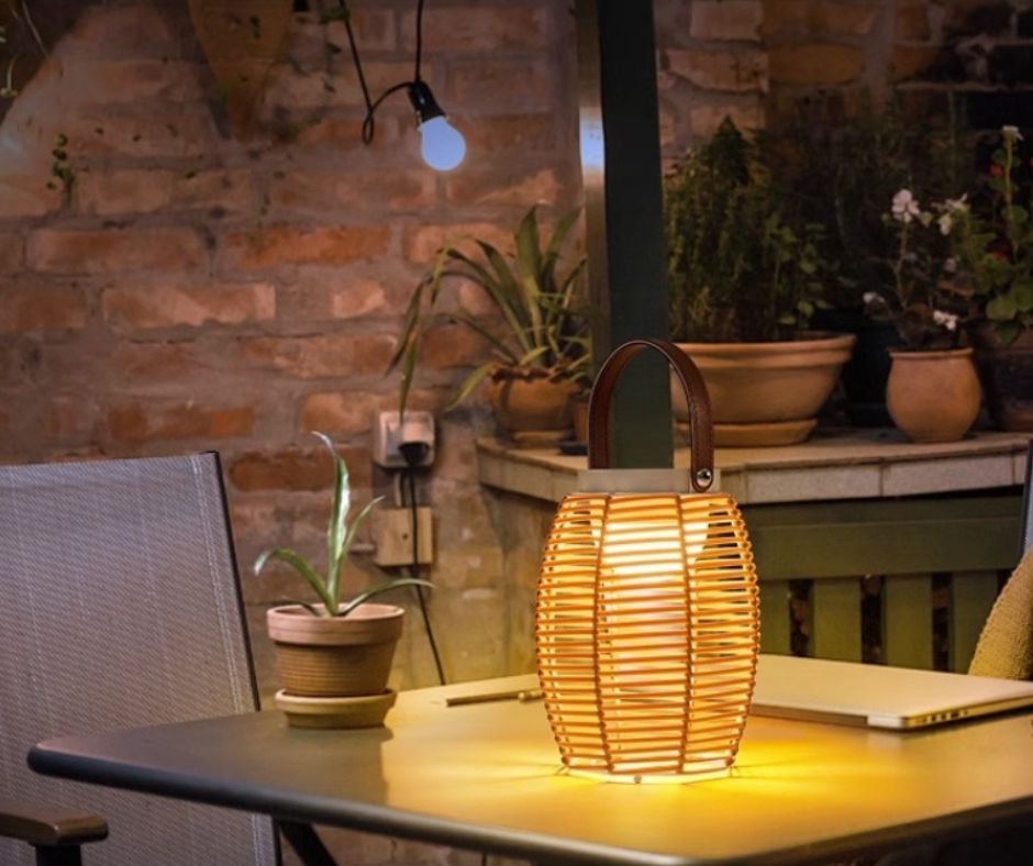 Imagine your evenings bathed in a soft golden glow, the openwork shade of the rattan casting subtle patterns on the table.