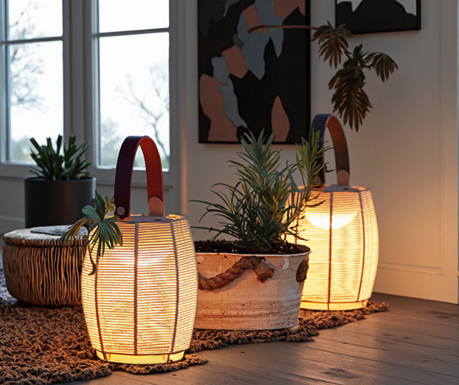 Its minimalist design combines natural materials with a metal structure, creating a decorative piece that's as beautiful by day as it is luminous by night.