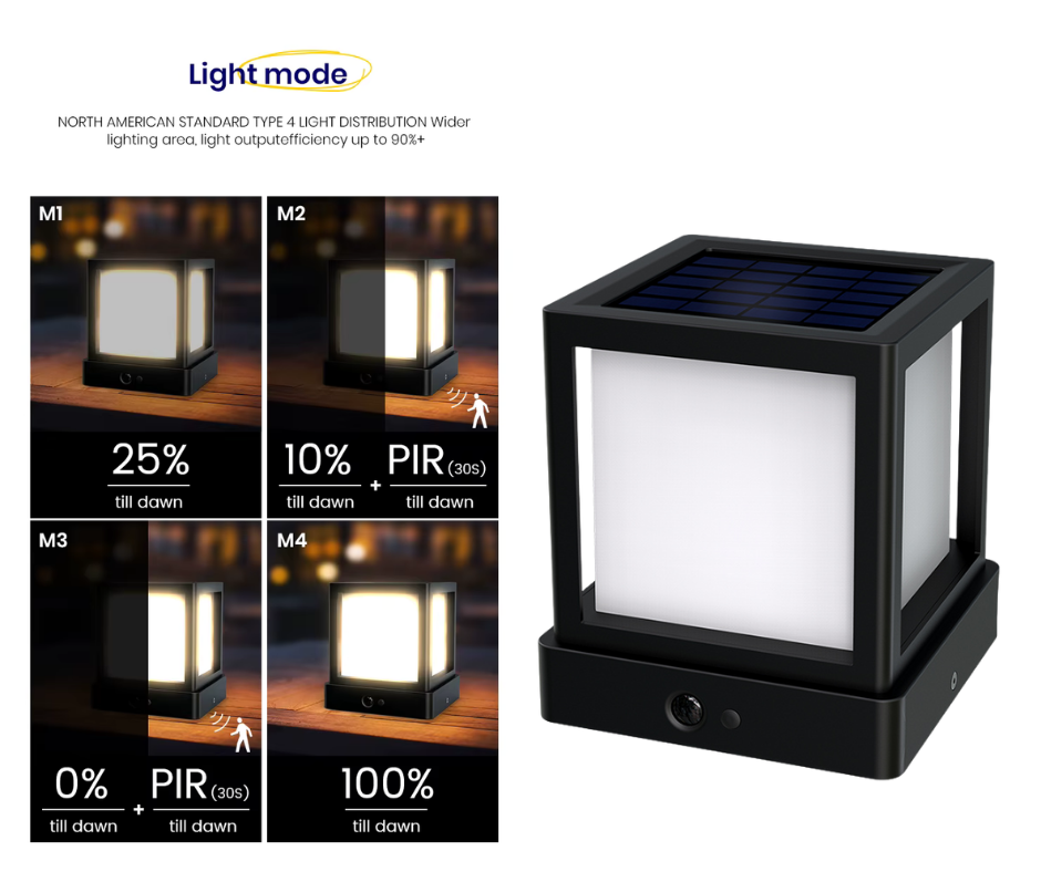 Powered by a monocrystalline silicon solar panel (4.86 V / 1.4 W) and a 3.7 V – 7.4 Wh rechargeable battery, the lamp operates efficiently for up to 50,000 hours, providing long-lasting illumination even during cloudy days.