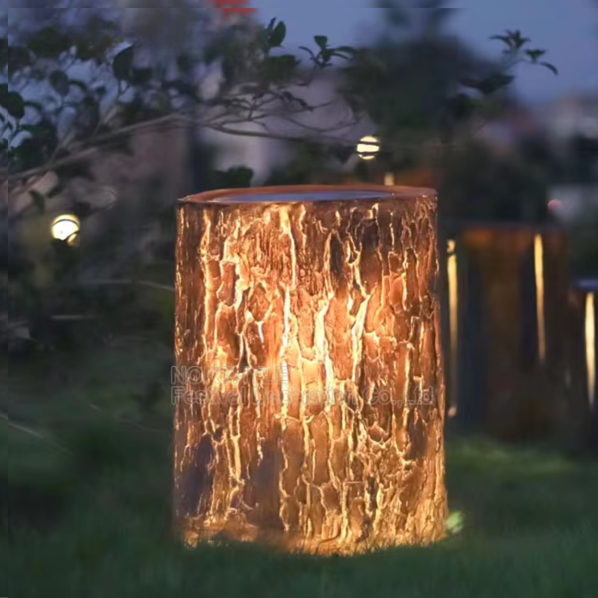 * Realistic landscape decor: wood-effect sculpture + built-in LED (3D look)