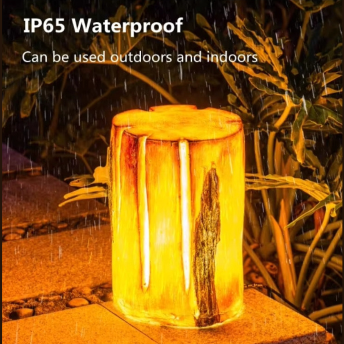 Enhance your garden with a tree-stump-effect light decoration: a natural look by day and a warm white 2700K glow at night—no cables needed thanks to solar power.