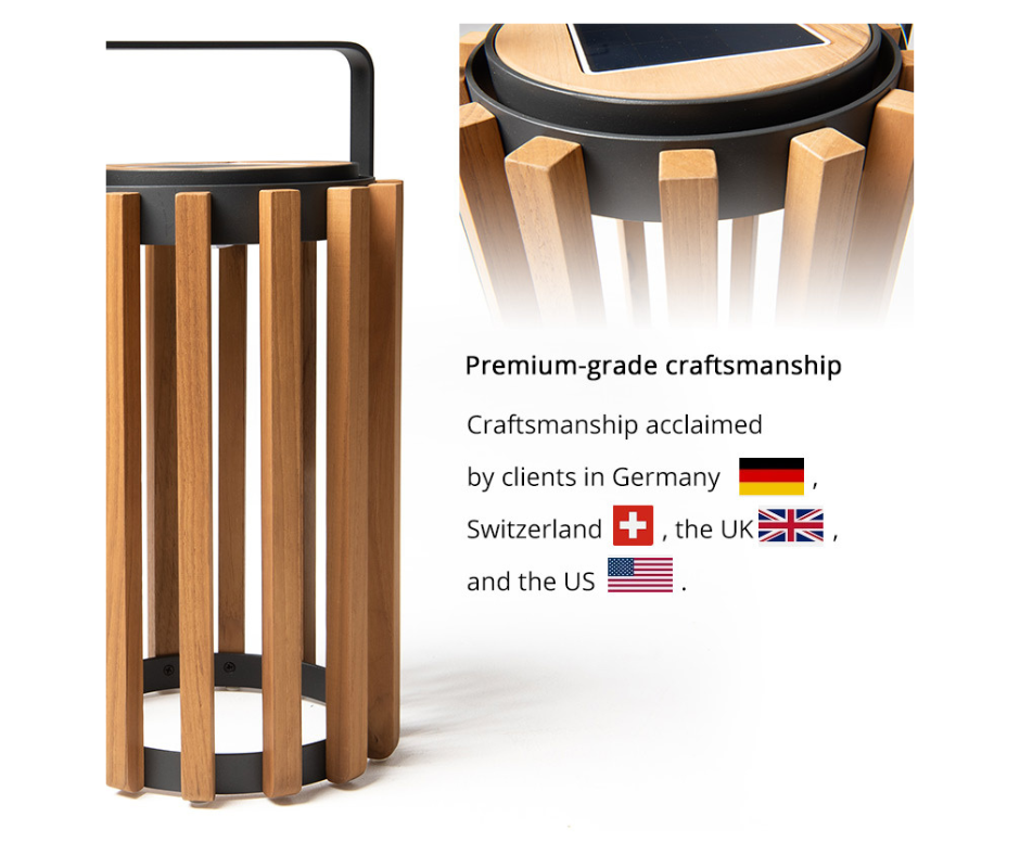 IP65 Waterproof | Natural Teak Wood | Warm White LED (2700K) | Elegant and Autonomous.