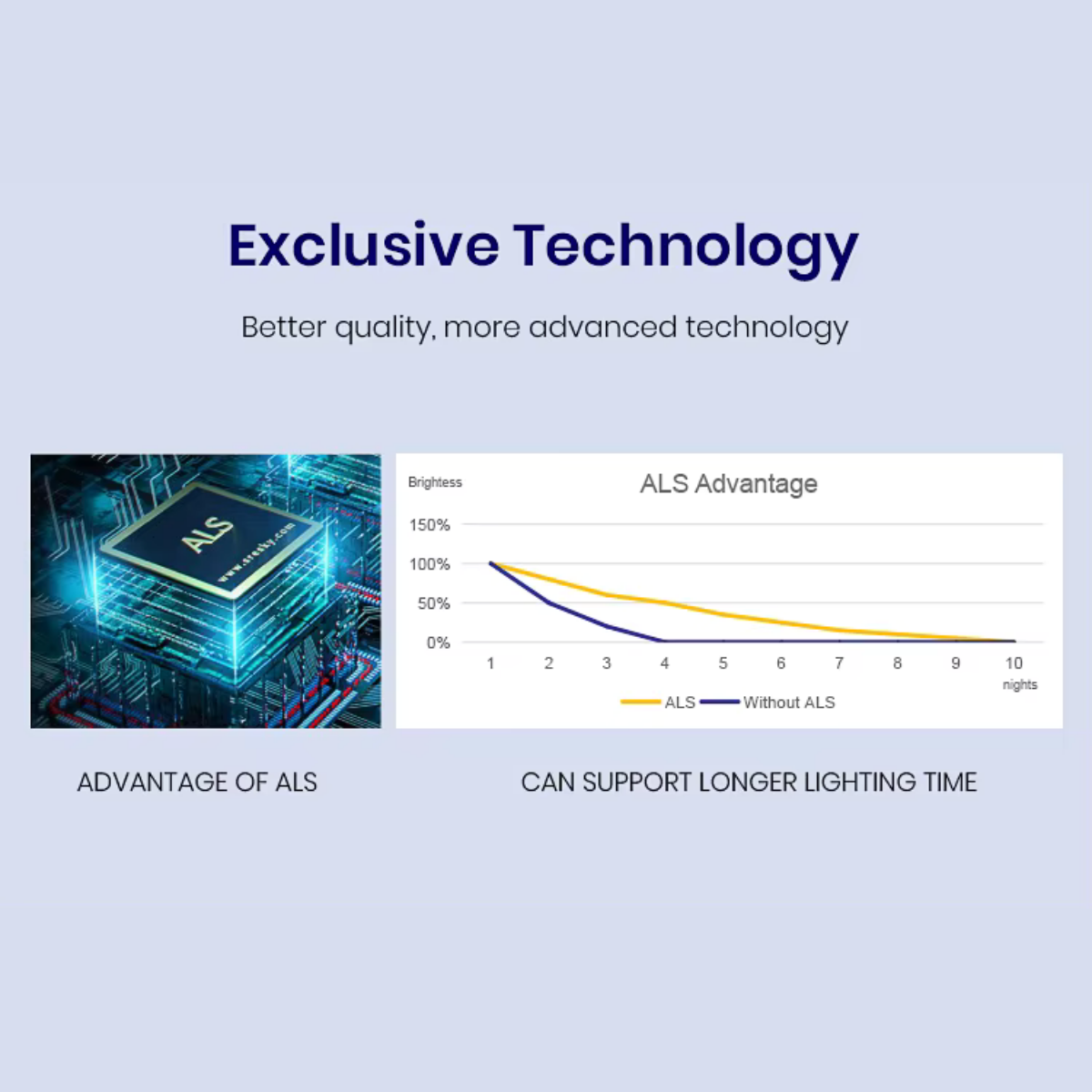 * 100% solar powered: clean energy, no wiring, no electricity costs