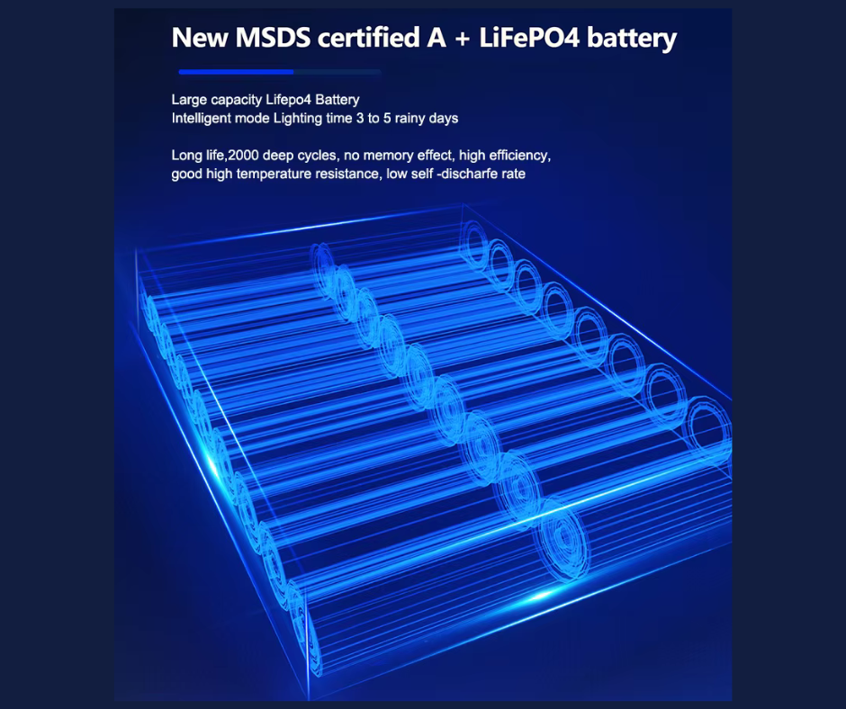 * Battery: LiFePO₄ (long lifespan, thermal stability)